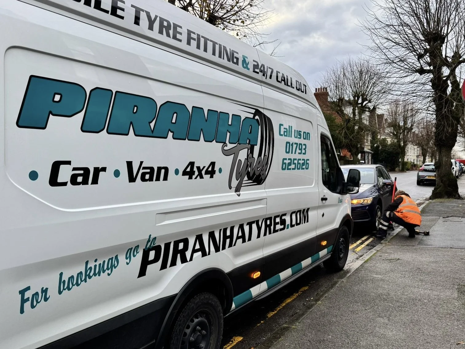 Piranha Tyres specialise in Mobile Tyre Fitting in Swindon. We cover Wiltshire, Oxfordshire & Gloucester and fit your tyres at home or work and even include a 24/7 call out service. All pre-booked mobile fitting comes at no extra cost! Call today for a quote!